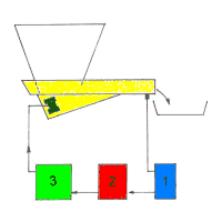 GraviControl®: Gravimetrische Dosierung mit Schwingrinnen 1. Schwingungsmessung 2. Regler/Rechnerauswertung 3. Frequenzumrichter |